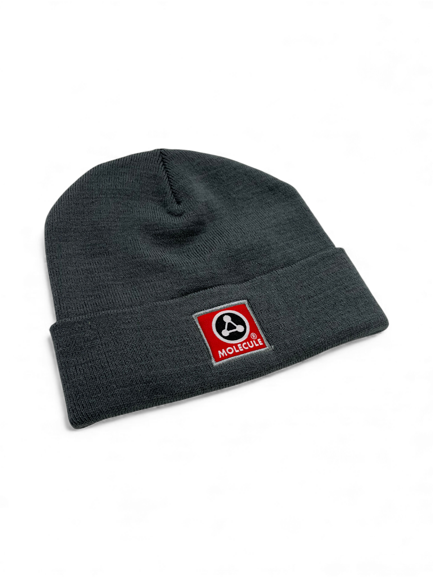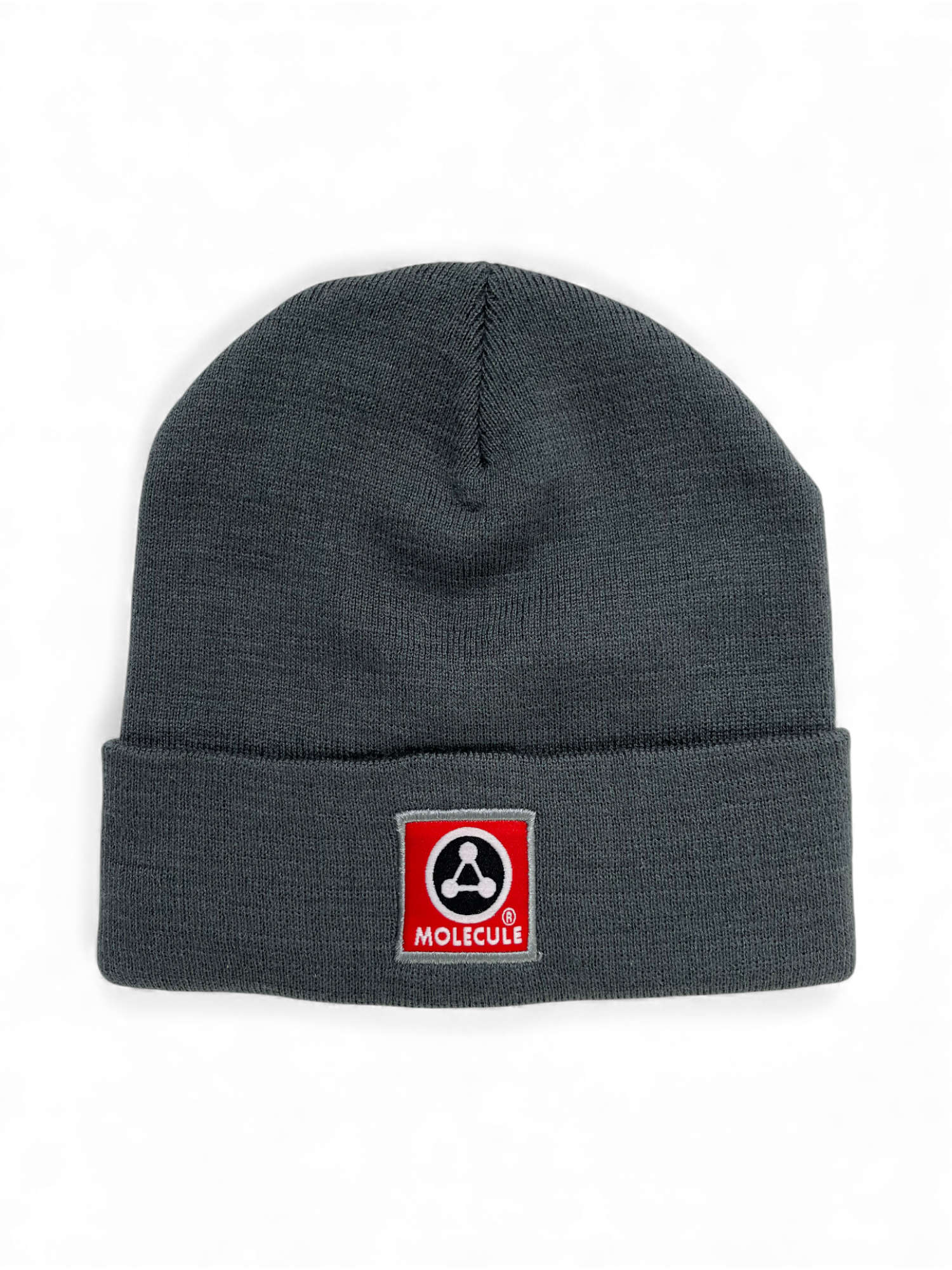 The beanie features an embroidered Molecule logo in its original form, just like you’ll find on the side of the original Molecule cargo pants. The logo is surrounded by an additional embroidery, ensuring it stays securely in place and doesn’t fray.